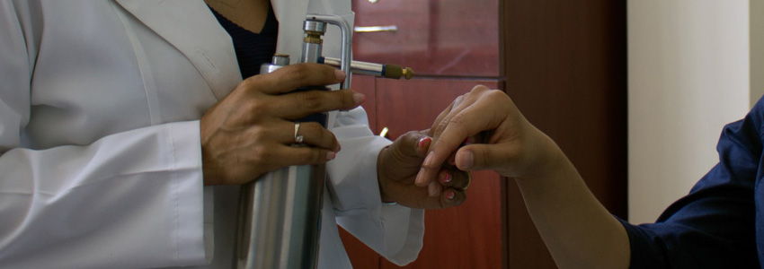 Consiste en la aplicación de nitrógeno líquido que se encuentra a – 200 grados centígrados, dando lugar a un frío extremo logrando la congelación y destrucción de las células anormales de la piel; es muy útil para el tratamiento de lesiones cutáneas superficiales.